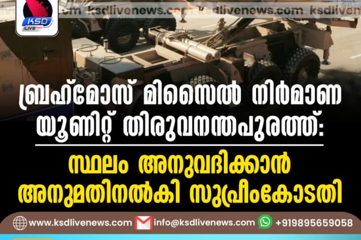 ദേശീയം ബ്രഹ്മോസ് മിസൈൽ നിർമാണ യൂണിറ്റ് തിരുവനന്തപുരത്ത്: സ്ഥലം അനുവദിക്കാൻ അനുമതിനൽകി സുപ്രീംകോടതിDecember 2, 2025