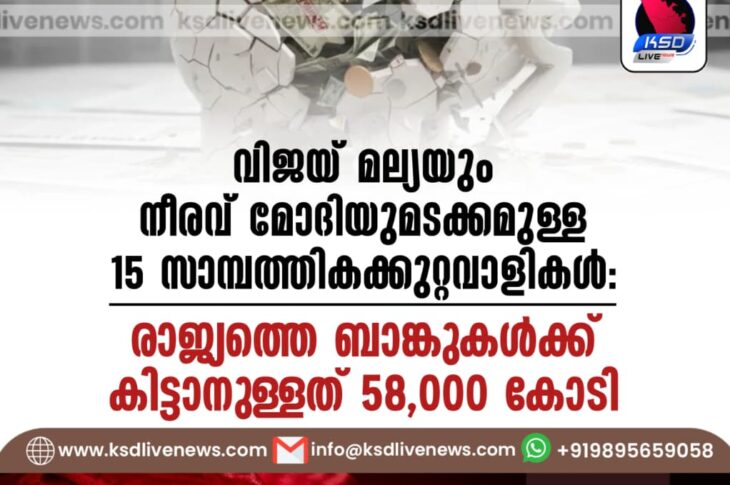 ദേശീയം വിജയ് മല്യയും നീരവ് മോദിയുമടക്കമുള്ള 15 സാമ്പത്തികക്കുറ്റവാളികൾ; രാജ്യത്തെ ബാങ്കുകൾക്ക് കിട്ടാനുള്ളത് 58,000 കോടി December 2, 2025