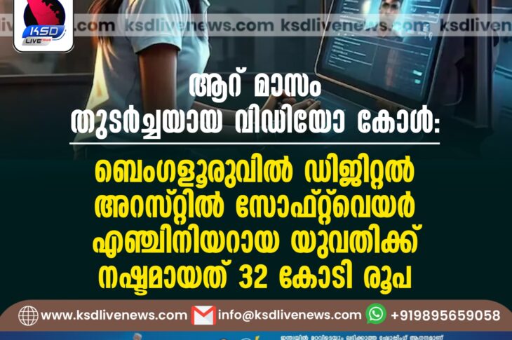 ദേശീയം ആറ് മാസം തുടർച്ചയായ വിഡിയോ കോൾ; ബെംഗളൂരുവിൽ ‘ഡിജിറ്റൽ അറസ്റ്റിൽ’ സോഫ്റ്റ്വെയർ എഞ്ചിനിയറായ യുവതിക്ക് നഷ്ടമായത് 32 കോടി രൂപNovember 17, 2025