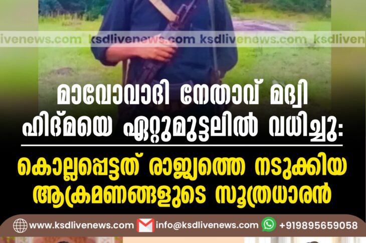 ദേശീയം മാവോവാദി നേതാവ് മദ്വി ഹിദ്മയെ ഏറ്റുമുട്ടലില് വധിച്ചു; കൊല്ലപ്പെട്ടത് രാജ്യത്തെ നടുക്കിയ ആക്രമണങ്ങളുടെ സൂത്രധാരന്November 18, 2025