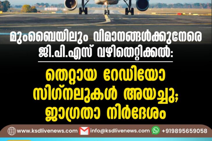 ദേശീയം മുംബൈയിലും വിമാനങ്ങൾക്കുനേരെ ജി.പി.എസ് വഴിതെറ്റിക്കൽ: തെറ്റായ റേഡിയോ സിഗ്നലുകൾ അയച്ചു, ജാഗ്രതാ നിർദേശംNovember 14, 2025