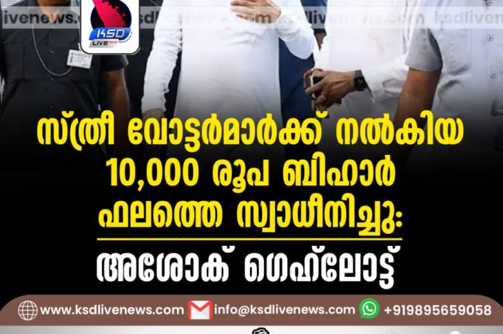 ദേശീയം സ്ത്രീ വോട്ടര്മാര്ക്ക് നല്കിയ 10,000 രൂപ ബിഹാര് ഫലത്തെ സ്വാധീനിച്ചു: അശോക് ഗെഹ്ലോട്ട്November 14, 2025
