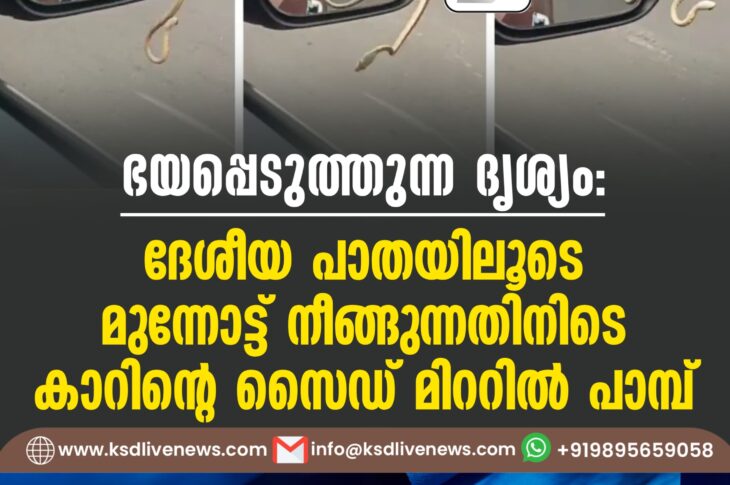ദേശീയം ഭയപ്പെടുത്തുന്ന ദൃശ്യം; ദേശീയ പാതയിലൂടെ മുന്നോട്ട് നീങ്ങുന്നതിനിടെ കാറിന്റെ സൈഡ് മിററില് പാമ്ബ്; വീഡിയോNovember 13, 2025