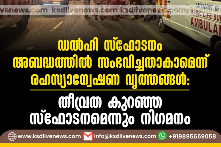 ദേശീയം ഡൽഹി സ്ഫോടനം അബദ്ധത്തിൽ സംഭവിച്ചതാകാമെന്ന് രഹസ്യാന്വേഷണ വൃത്തങ്ങൾ; തീവ്രത കുറഞ്ഞ സ്ഫോടനമെന്നും നിഗമനംNovember 12, 2025