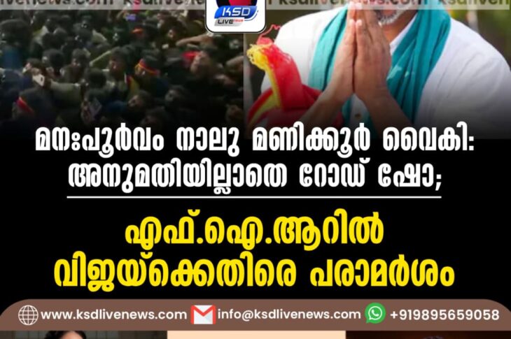 ദേശീയം മനഃപൂർവം നാലു മണിക്കൂർ വൈകി: അനുമതിയില്ലാതെ റോഡ് ഷോ; എഫ്.ഐ.ആറിൽ വിജയ്ക്കെതിരെ പരാമർശംSeptember 29, 2025