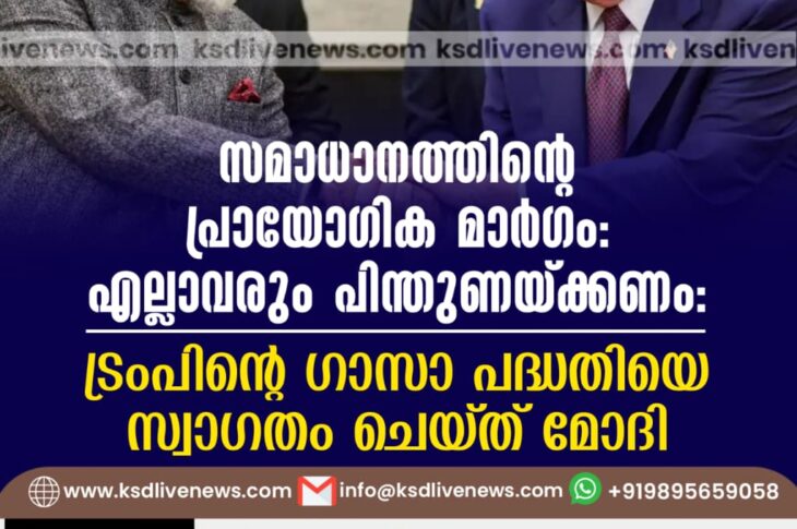 ദേശീയം സമാധാനത്തിന്റെ പ്രായോഗിക മാർഗം: എല്ലാവരും പിന്തുണയ്ക്കണം; ട്രംപിന്റെ ഗാസാ പദ്ധതിയെ സ്വാഗതം ചെയ്ത് മോദിSeptember 30, 2025