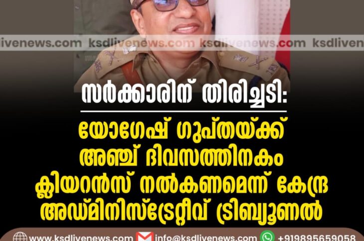 ദേശീയം സര്ക്കാരിന് തിരിച്ചടി: യോഗേഷ് ഗുപ്തയ്ക്ക് അഞ്ച് ദിവസത്തിനകം ക്ലിയറന്സ് നല്കണമെന്ന് കേന്ദ്ര അഡ്മിനിസ്ട്രേറ്റീവ് ട്രിബ്യൂണല്September 30, 2025