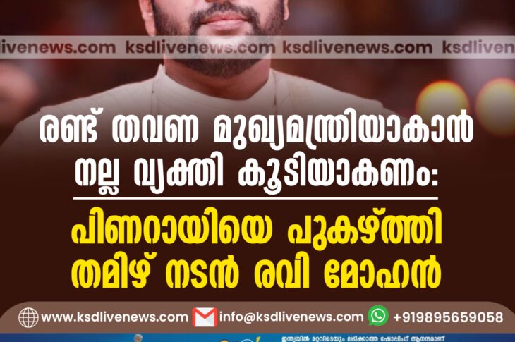 ദേശീയം രണ്ട് തവണ മുഖ്യമന്ത്രിയാകാന് നല്ല വ്യക്തി കൂടിയാകണം: പിണറായിയെ പുകഴ്ത്തി തമിഴ് നടന് രവി മോഹന്September 3, 2025
