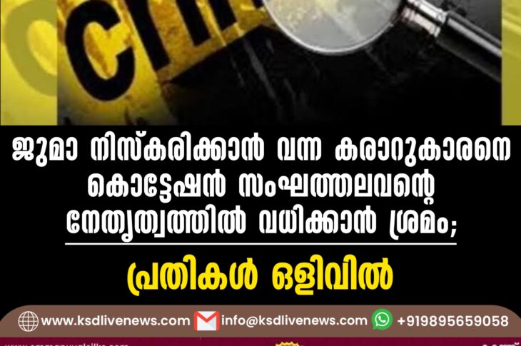 പ്രാദേശികം ജുമാ നിസ്കരിക്കാൻ വന്ന കരാറുകാരനെ കൊട്ടേഷൻ സംഘത്തലവന്റെ നേതൃത്വത്തിൽ വധിക്കാൻ ശ്രമം; പ്രതികൾ ഒളിവിൽJuly 22, 2024