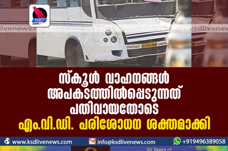 പ്രാദേശികം സ്കൂള് വാഹനങ്ങള് അപകടത്തില്പ്പെടുന്നത് പതിവായതോടെ എം.വി.ഡി. പരിശോധന ശക്തമാക്കിJanuary 18, 2024