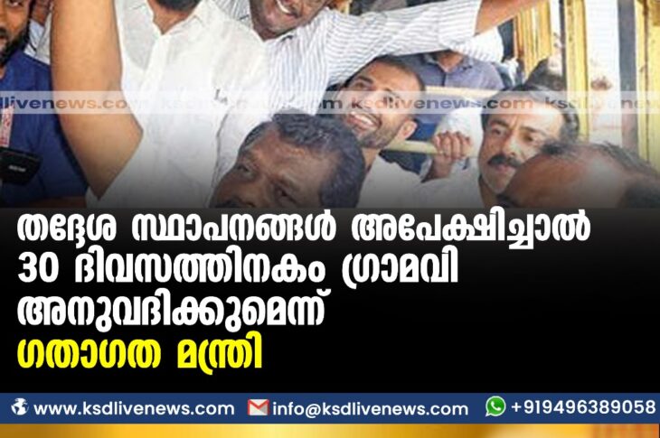 പ്രാദേശികം തദ്ദേശസ്ഥാപനങ്ങൾ അപേക്ഷിച്ചാൽ 30 ദിവസത്തിനകം ഗ്രാമവണ്ടി അനുവദിക്കുമെന്ന് ഗതാഗത മന്ത്രിOctober 7, 2023