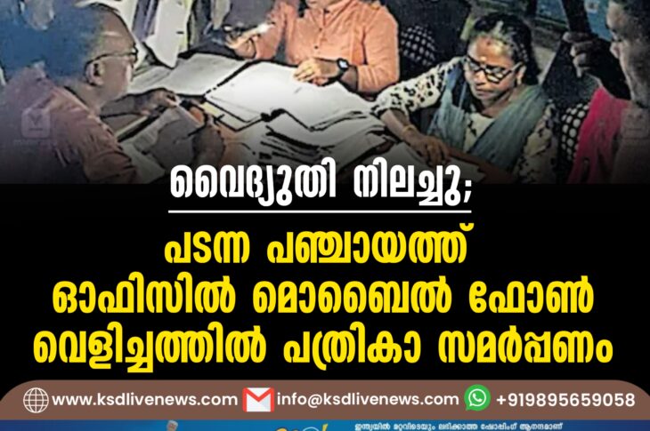 പ്രാദേശികം വൈദ്യുതി നിലച്ചു; പടന്ന പഞ്ചായത്ത് ഓഫിസിൽ മൊബൈൽ ഫോണ് വെളിച്ചത്തിൽ പത്രികാ സമർപ്പണംNovember 21, 2025