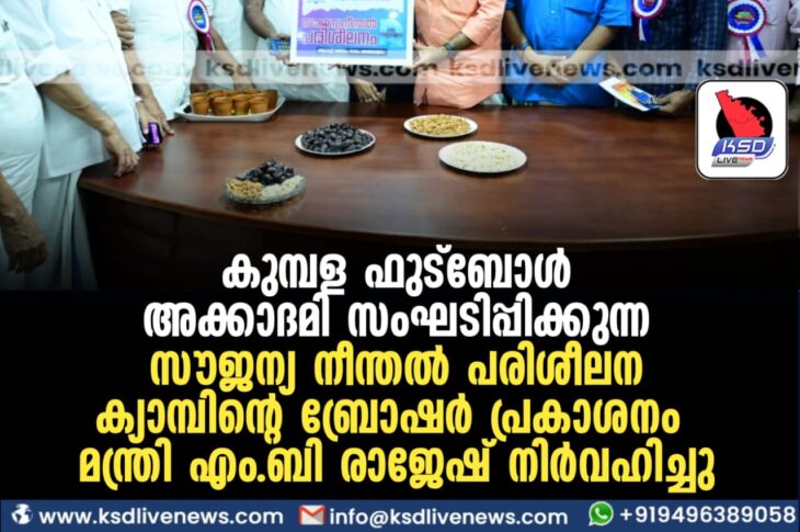 പ്രാദേശികം കുമ്പള ഫുട്ബോൾ അക്കാദമി സംഘടിപ്പിക്കുന്ന സൗജന്യ നീന്തൽ പരിശീലന ക്യാമ്പിന്റെ ബ്രോഷർ പ്രകാശനം മന്ത്രി എം ബി രാജേഷ് നിർവഹിച്ചുAugust 2, 2023
