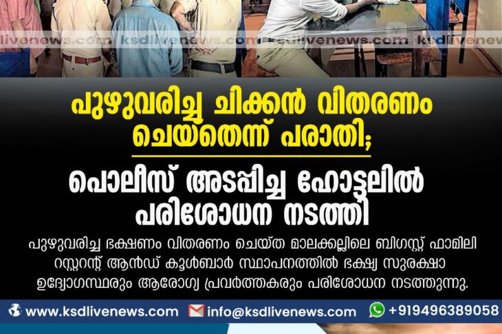 പ്രാദേശികം പുഴുവരിച്ച ചിക്കൻ വിതരണം ചെയ്തെന്ന് പരാതി; പൊലീസ് അടപ്പിച്ച ഹോട്ടലിൽ പരിശോധന നടത്തിJuly 12, 2023