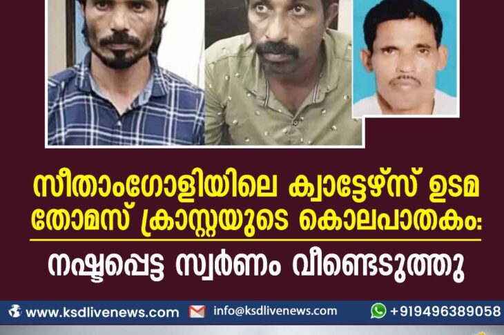 പ്രാദേശികം സീതാംഗോളിയിലെ ക്വാട്ടേഴ്സ് ഉടമ തോമസ് ക്രാസ്റ്റയുടെ കൊലപാതകം: നഷ്ടപ്പെട്ട സ്വർണം വീണ്ടെടുJuly 8, 2023