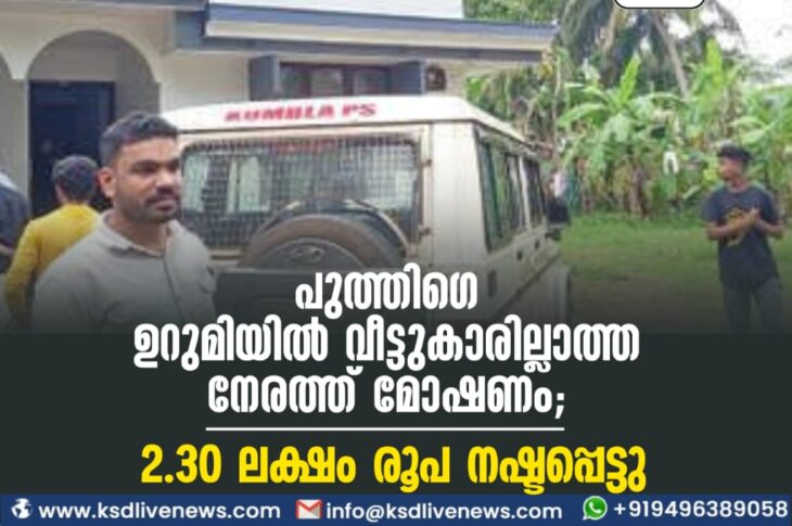 പ്രാദേശികം പുത്തിഗെ ഉറുമിയിൽ വീട്ടുകാരില്ലാത്ത നേരത്ത് മോഷണം; 2.30 ലക്ഷം രൂപ നഷ്ടപ്പെട്ടുJuly 4, 2023