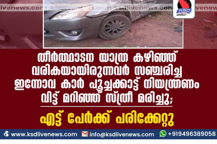 പ്രാദേശികം തീർത്ഥാടന യാത്ര കഴിഞ്ഞ് വരികയായിരുന്നവർ സഞ്ചരിച്ച ഇന്നോവ കാർ പൂച്ചക്കാട്ട് നിയന്ത്രണം വിട്ട് മറിഞ്ഞ് സ്ത്രീ മരിച്ചു; എട്ട് പേർക്ക് പരിക്കേറ്റുJune 2, 2023