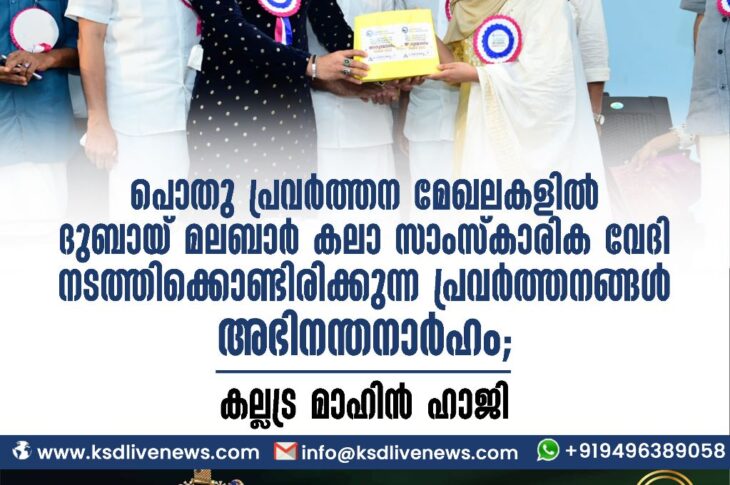 പ്രാദേശികം പൊതു പ്രവർത്തന മേഖലകളിൽ ദുബായ് മലബാർ കലാ സാംസ്കാരിക വേദി നടത്തിക്കൊണ്ടിരിക്കുന്ന പ്രവർത്തനങ്ങൾ അഭിനന്തനാർഹം; കല്ലട്ര മാഹിൻ ഹാജിJune 5, 2023