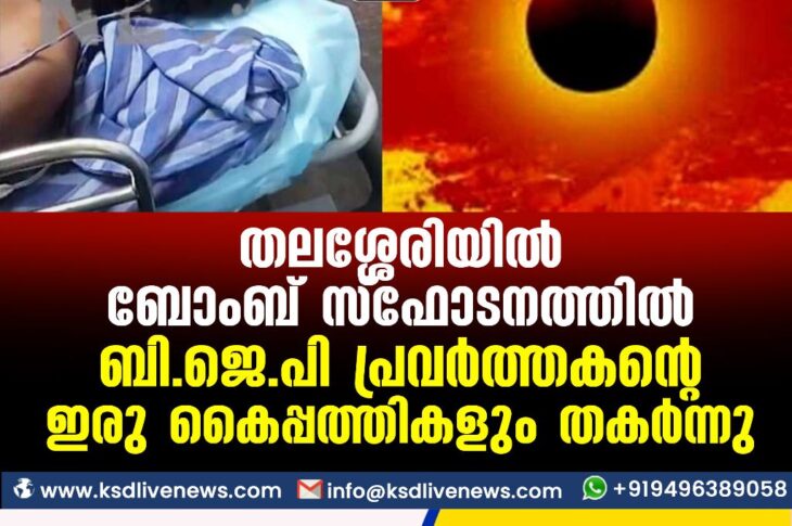 പ്രാദേശികം തലശ്ശേരിയിൽ ബോംബ് സ്ഫോടനത്തിൽ ബിജെപി പ്രവർത്തകന്റെ ഇരു കൈപ്പത്തികളും തകർന്നുApril 12, 2023
