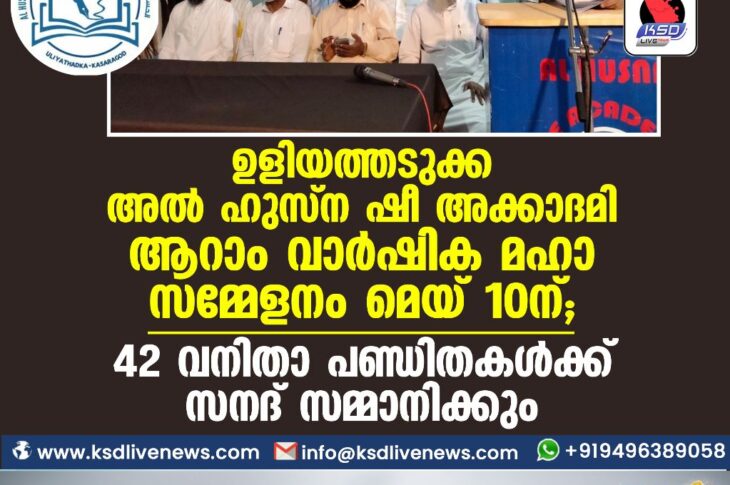 പ്രാദേശികം ഉളിയത്തടുക്ക അൽ ഹുസ്ന ഷീ അക്കാദമി ആറാം വാർഷിക മഹാ സമ്മേളനം മെയ് 10ന്; 42 വനിതാ പണ്ഡിതകൾക്ക് സനദ് സമ്മാനിക്കുംApril 13, 2023
