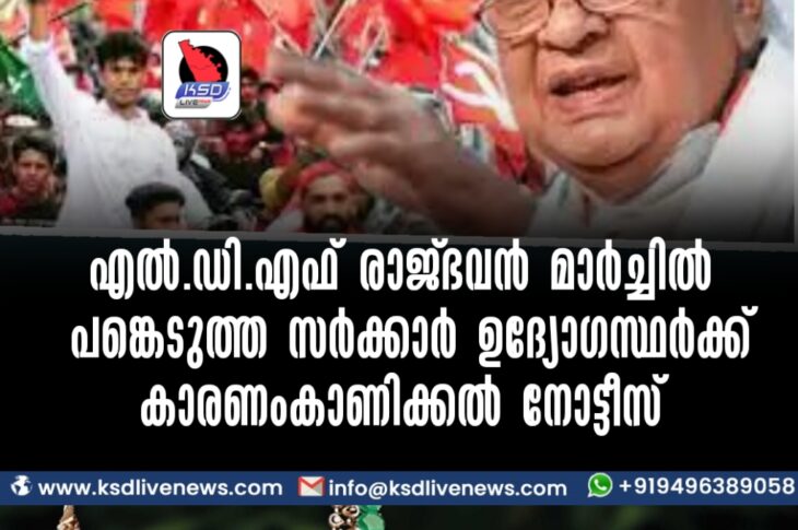പ്രാദേശികം എല്.ഡി.എഫ് രാജ്ഭവന് മാര്ച്ചില് പങ്കെടുത്ത സര്ക്കാര് ഉദ്യോഗസ്ഥര്ക്ക് കാരണംകാണിക്കല് നോട്ടീസ്November 25, 2022