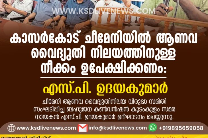 പ്രാദേശികം കാസർകോട് ചീമേനിയിൽ ആണവ വൈദ്യുതി നിലയത്തിനുള്ള നീക്കം ഉപേക്ഷിക്കണം: എസ്.പി.ഉദയകുമാർDecember 23, 2024