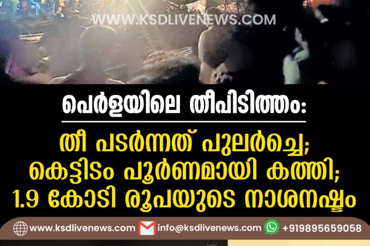 പ്രാദേശികം പെർളയിലെ തീപിടിത്തം: തീ പടർന്നത് പുലർച്ചെ; കെട്ടിടം പൂർണമായി കത്തി, 1.9 കോടി രൂപയുടെ നാശനഷ്ടംDecember 23, 2024