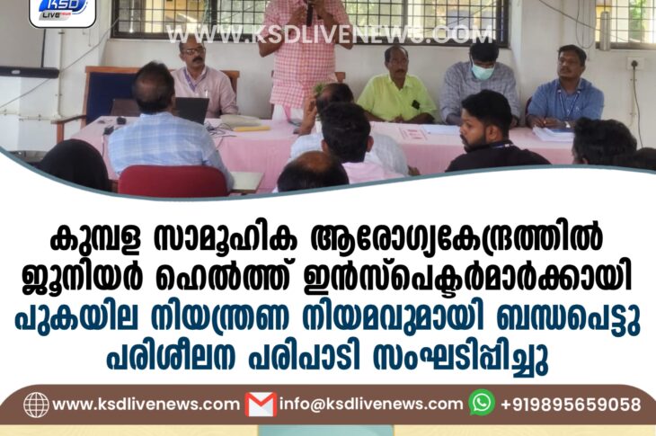 പ്രാദേശികം കുമ്പള സാമൂഹിക ആരോഗ്യകേന്ദ്രത്തിൽ ജൂനിയർ ഹെൽത്ത് ഇൻസ്പെക്ടർ മാർക്കായി പുകയില നിയന്ത്രണ നിയമവു മായി ബന്ധപെട്ടു പരിശീലന പരിപാടി സംഘടിപ്പിച്ചുDecember 20, 2024