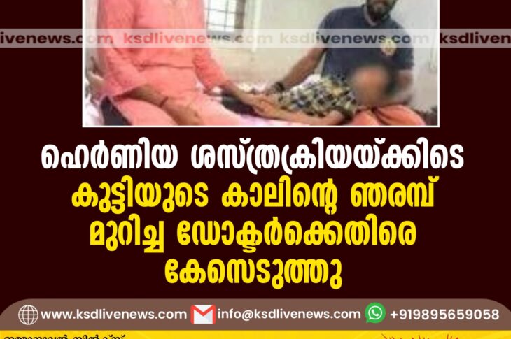 പ്രാദേശികം ഹെര്ണിയ ശസ്ത്രക്രിയയ്ക്കിടെ കുട്ടിയുടെ കാലിന്റെ ഞരമ്ബ് മുറിച്ച ഡോക്ടര്ക്കെതിരെ കേസെടുത്തുOctober 15, 2024