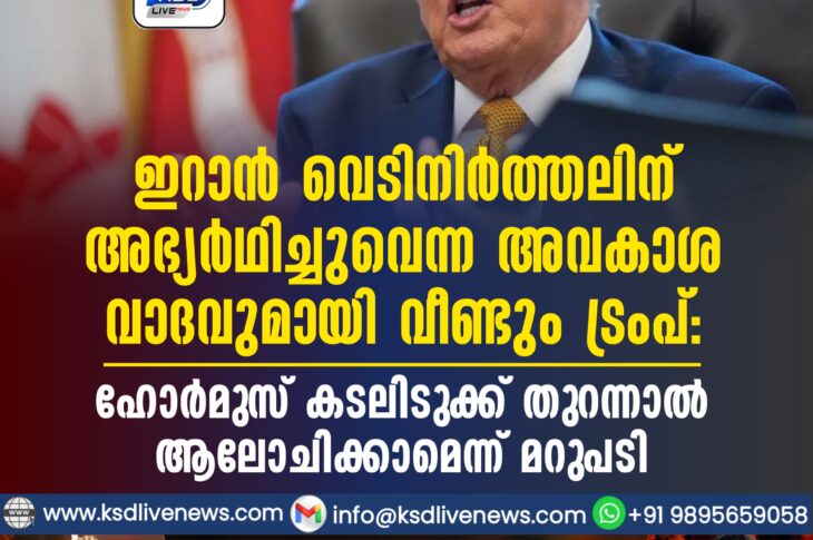 വിദേശം ഇറാൻ വെടിനിർത്തലിന് അഭ്യർഥിച്ചുവെന്ന അവകാശ വാദവുമായി വീണ്ടും ട്രംപ്; ഹോർമുസ് കടലിടുക്ക് തുറന്നാൽ ആലോചിക്കാമെന്ന് മറുപടിApril 1, 2026