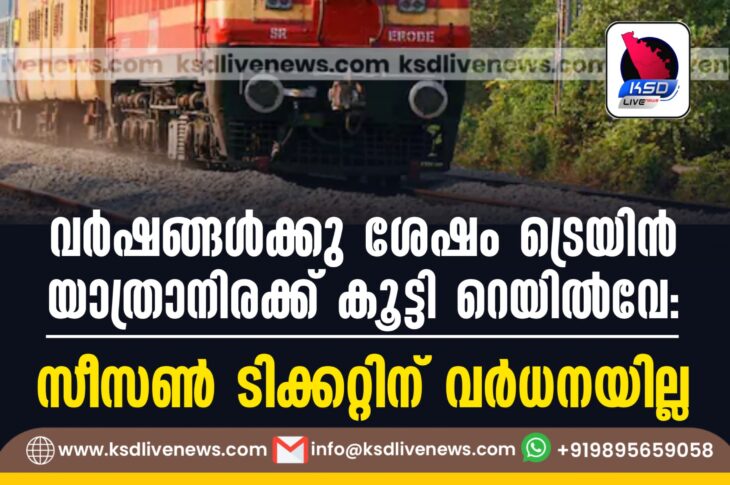 വിദേശം വർഷങ്ങൾക്കു ശേഷം ട്രെയിൻ യാത്രാനിരക്ക് കൂട്ടി റെയിൽവേ; സീസൺ ടിക്കറ്റിന് വർധനയില്ലJune 25, 2025