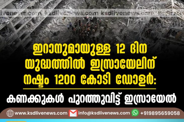 വിദേശം ഇറാനുമായുള്ള 12 ദിന യുദ്ധത്തില് ഇസ്രായേലിന് നഷ്ടം 1200 കോടി ഡോളര്: കണക്കുകള് പുറത്തുവിട്ട് ഇസ്രായേല്June 27, 2025