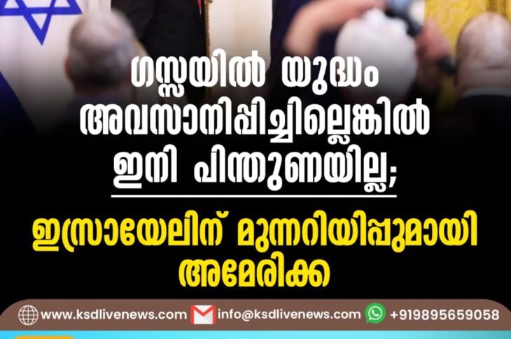 വിദേശം ഗസ്സയിൽ യുദ്ധം അവസാനിപ്പിച്ചില്ലെങ്കിൽ ഇനി പിന്തുണയില്ല; ഇസ്രായേലിന് മുന്നറിയിപ്പുമായി അമേരിക്കMay 20, 2025