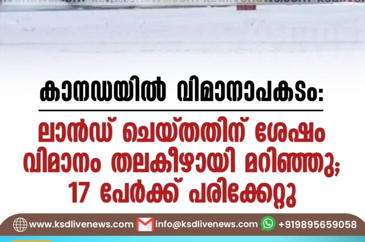 വിദേശം കാനഡയില് വിമാനാപകടം; ലാൻഡ് ചെയ്തതിന് ശേഷം വിമാനം തലകീഴായി മറിഞ്ഞു, 17 പേര്ക്ക് പരിക്കേറ്റുFebruary 18, 2025