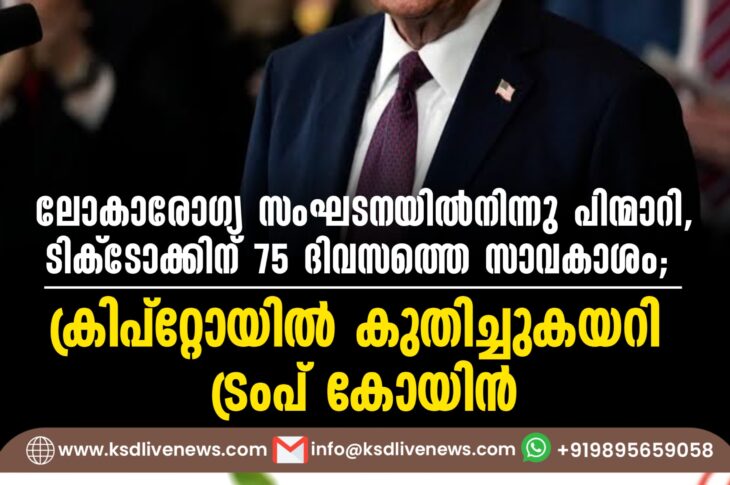 വിദേശം ലോകാരോഗ്യ സംഘടനയില്നിന്നു പിന്മാറി, ടിക്ടോക്കിന് 75 ദിവസത്തെ സാവകാശം; ക്രിപ്റ്റോയിൽ കുതിച്ചുകയറി ട്രംപ് കോയിൻJanuary 21, 2025