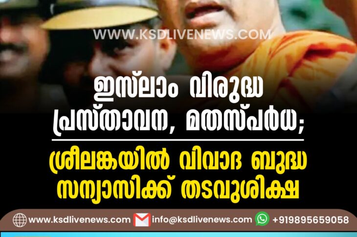 വിദേശം ഇസ്ലാം വിരുദ്ധ പ്രസ്താവന, മതസ്പര്ധ; ശ്രീലങ്കയില് വിവാദ ബുദ്ധ സന്യാസിക്ക് തടവുശിക്ഷJanuary 10, 2025