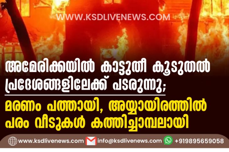 വിദേശം അമേരിക്കയില് കാട്ടുതീ കൂടുതല് പ്രദേശങ്ങളിലേക്ക് പടരുന്നു; മരണം പത്തായി, അയ്യായിരത്തില് പരം വീടുകള് കത്തിച്ചാമ്പലായിJanuary 10, 2025