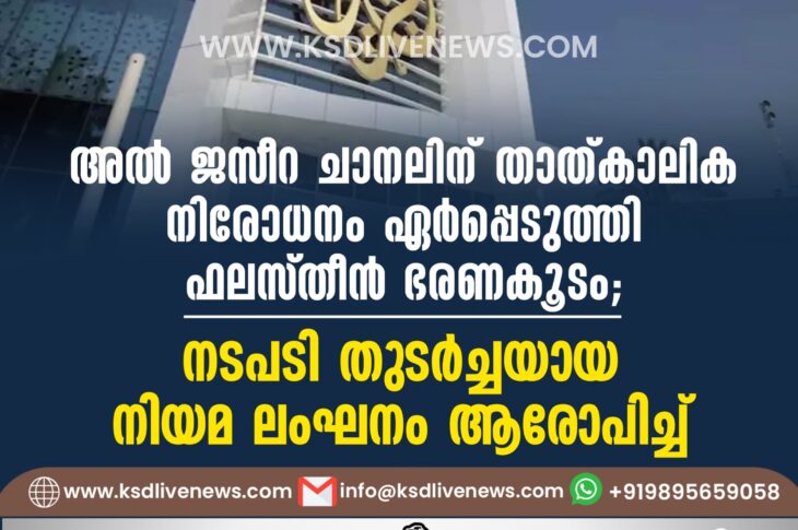 വിദേശം അല് ജസീറ ചാനലിന് താത്കാലിക നിരോധനം ഏര്പ്പെടുത്തി ഫലസ്തീൻ ഭരണകൂടം; നടപടി തുടര്ച്ചയായ നിയമ ലംഘനം ആരോപിച്ച്January 2, 2025