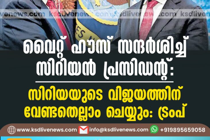 വിദേശം വൈറ്റ് ഹൗസ് സന്ദർശിച്ച് സിറിയൻ പ്രസിഡന്റ്: സിറിയയുടെ വിജയത്തിന് വേണ്ടതെല്ലാം ചെയ്യും: ട്രംപ്November 12, 2025