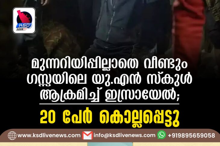 വിദേശം മുന്നറിയിപ്പില്ലാതെ വീണ്ടും ഗസ്സയിലെ യു.എൻ സ്കുള് ആക്രമിച്ച് ഇസ്രായേല്; 20 പേര് കൊല്ലപ്പെട്ടുDecember 17, 2024