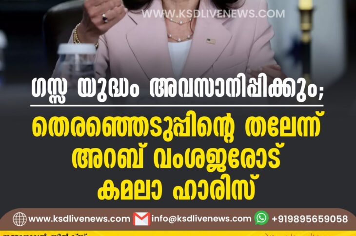 വിദേശം ഗസ്സ യുദ്ധം അവസാനിപ്പിക്കും’; തെരഞ്ഞെടുപ്പിന്റെ തലേന്ന് അറബ് വംശജരോട് കമലാ ഹാരിസ്November 4, 2024