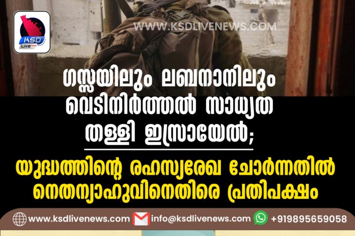 വിദേശം ഗസ്സയിലും ലബനാനിലും വെടിനിർത്തൽ സാധ്യത തള്ളി ഇസ്രായേൽ; യുദ്ധത്തിന്റെ രഹസ്യരേഖ ചോർന്നതില് നെതന്യാഹുവിനെതിരെ പ്രതിപക്ഷംNovember 4, 2024