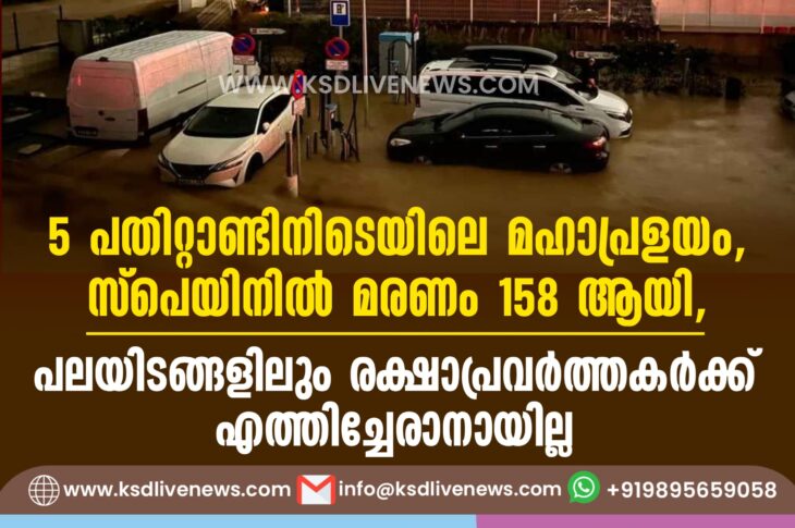 വിദേശം 5 പതിറ്റാണ്ടിനിടെയിലെ മഹാപ്രളയം, സ്പെയിനില് മരണം 158 ആയി, പലയിടങ്ങളിലും രക്ഷാപ്രവര്ത്തകര്ക്ക് എത്തിച്ചേരാനായില്ലNovember 1, 2024