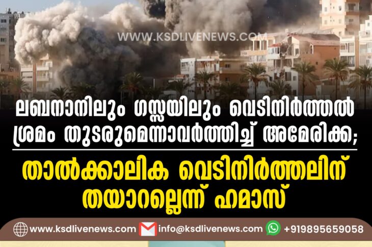 വിദേശം ലബനാനിലും ഗസ്സയിലും വെടിനിർത്തൽ ശ്രമം തുടരുമെന്നാവർത്തിച്ച് അമേരിക്ക; താല്ക്കാലിക വെടിനിര്ത്തലിന് തയാറല്ലെന്ന് ഹമാസ്November 2, 2024