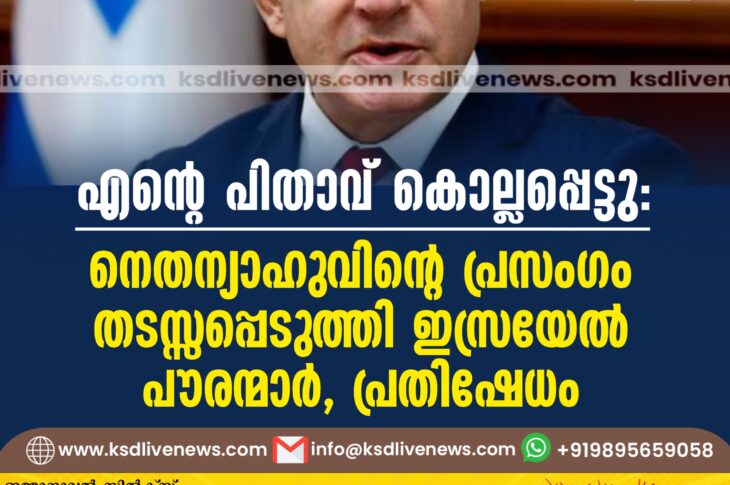 വിദേശം എന്റെ പിതാവ് കൊല്ലപ്പെട്ടു: നെതന്യാഹുവിന്റെ പ്രസംഗം തടസ്സപ്പെടുത്തി ഇസ്രയേൽ പൗരന്മാർ, പ്രതിഷേധംOctober 28, 2024