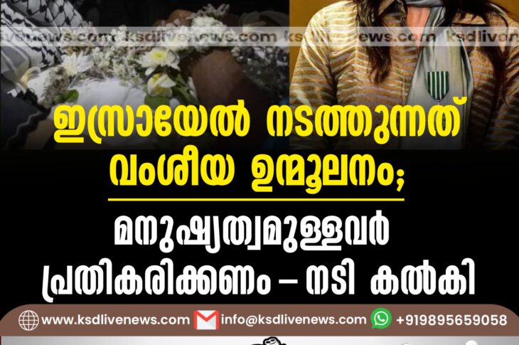 വിദേശം ഇസ്രായേല് നടത്തുന്നത് വംശീയ ഉന്മൂലനം; മനുഷ്യത്വമുള്ളവര് പ്രതികരിക്കണം- നടി കല്കിOctober 28, 2024