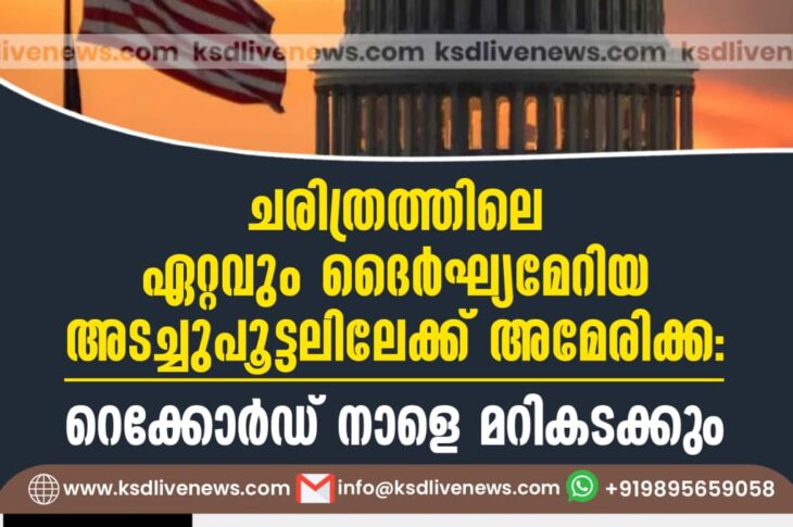 വിദേശം ചരിത്രത്തിലെ ഏറ്റവും ദൈര്ഘ്യമേറിയ അടച്ചുപൂട്ടലിലേക്ക് അമേരിക്ക; റെക്കോര്ഡ് നാളെ മറികടക്കുംNovember 4, 2025