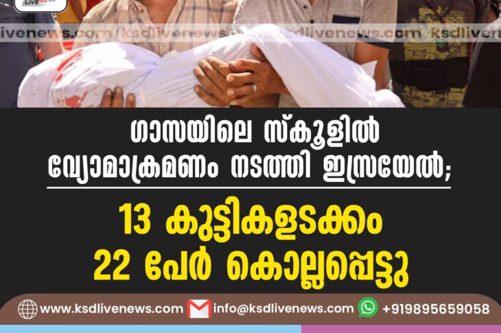 വിദേശം ഗാസയിലെ സ്കൂളിൽ വ്യോമാക്രമണം നടത്തി ഇസ്രയേൽ; 13 കുട്ടികളടക്കം 22 പേർ കൊല്ലപ്പെട്ടുSeptember 21, 2024