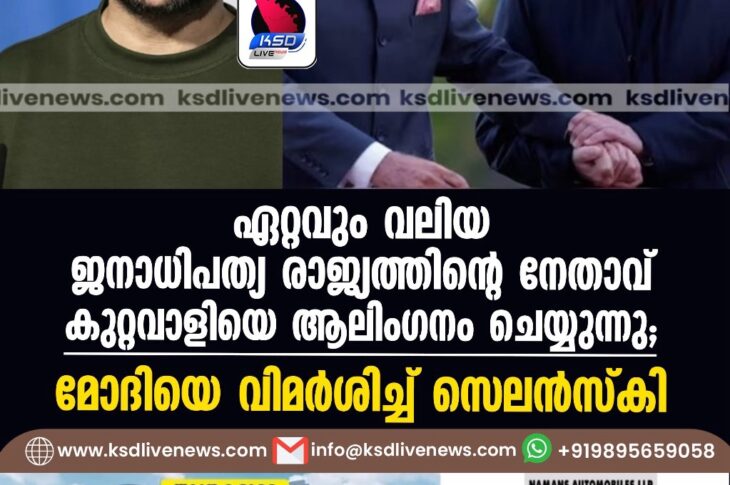 വിദേശം ഏറ്റവും വലിയ ജനാധിപത്യ രാജ്യത്തിന്റെ നേതാവ് കുറ്റവാളിയെ ആലിംഗനം ചെയ്യുന്നു’; മോദിയെ വിമർശിച്ച് സെലൻസ്കിJuly 9, 2024