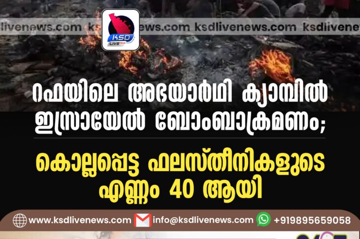 വിദേശം റഫയിലെ അഭയാര്ഥി ക്യാമ്പില് ഇസ്രായേല് ബോംബാക്രമണം: കൊല്ലപ്പെട്ട ഫലസ്തീനികളുടെ എണ്ണം 40 ആയിMay 27, 2024